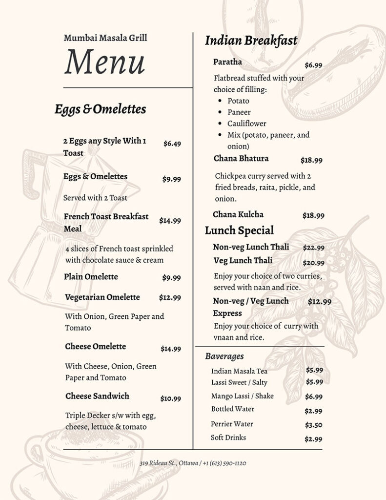 At Mumbai Masala Grill, we don’t just prepare food—we create memories through food. Our goal is to bring you the most authentic flavors of India, right here in Ottawa. From the aromatic spices to the freshest ingredients, every element of our cooking is designed to provide a true taste of Indian culinary heritage.